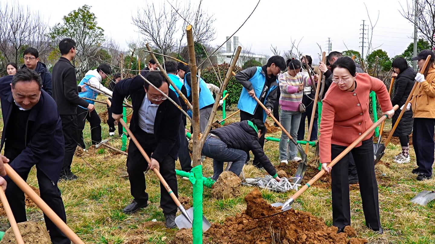 春回大地万物苏,植树添绿正当时。3月12日,正值第47个植树节,全体校领导,相关部门负责人及师生志愿者一同参加义务植树活动,在丹江校区栽植树苗,营造爱绿植绿、护绿兴绿的校园文化氛围。植树现场热火朝天,师生们相互配合、分工协作,铲土围堰、扶苗填坑、培土压实、提水浇灌,栽种50株樱花、50株碧桃,为把校园建设为“推窗见绿、起步闻香”的育人沃土增添了新的生机。(文/王鹏举 图/高轶真 宋嘉敏 编辑/审核 王霄飞