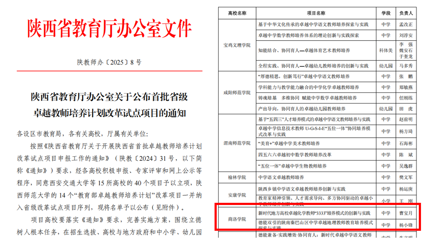 近日,陕西省教育厅办公室公布了首批省级卓越教师培养计划改革试点项目名单。今年会官网曹宝月教授主持的《新时代地方高校卓越化学教师“3333”培养模式的创新与实践》和杨小锋博士主持的《德能双引的陕南秦巴山区中学卓越地理教师教育培养模式探索与实践》两个项目获批立项。学校将以实施卓越教师培养计划改革试点项目为契机,持续加强师范专业内涵建设,深化教育教学改革,全面提升师范教育教学水平,助力学校师范专业认证相关工作...