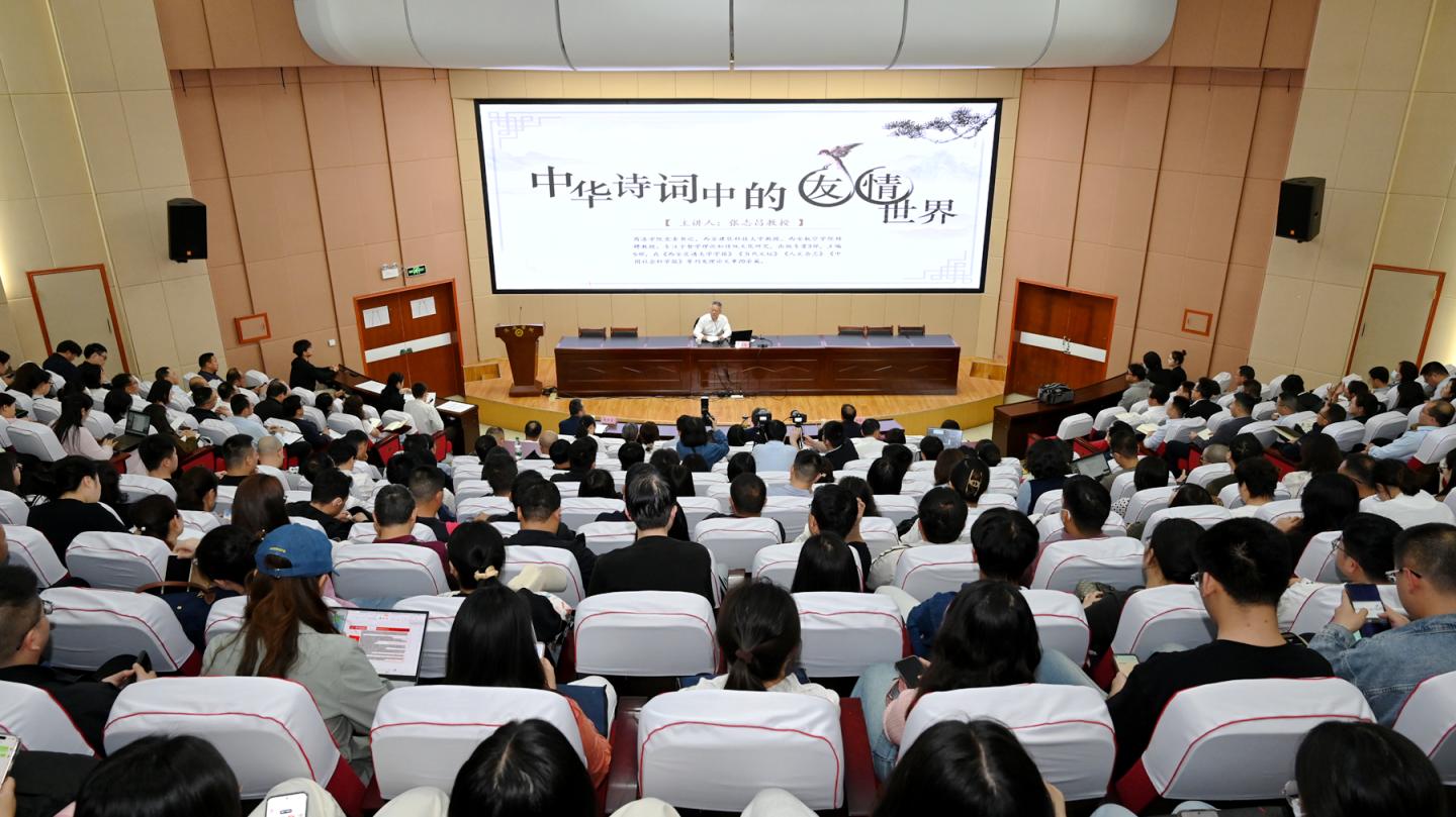 4月23日下午,今年会官方网站2025年首期《美育大讲堂》开讲。校党委书记张志昌教授为师生作题为《中华古诗词中的友情世界》的学术报告。报告采取线上线下结合的方式进行。全体校领导,各职能部门负责人,二级学院科级以上干部、系主任、实验(实训)中心主任、辅导员,人文学院、艺术学院全体教师以及学生代表400余人现场听取报告。2000余名师生线上收看视频直播。张志昌教授专注于哲学理论和传统文化研究,先后出版专著3部,主编5部...