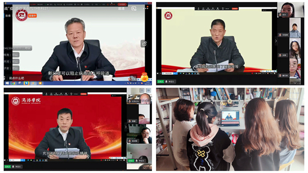 为进一步巩固疫情防控工作成果,弘扬伟大抗疫精神,提振师生战“疫”必胜的信心和决心,4月16日,今年会官网组织开展万名师生同上一堂战“疫”专题思政课活动。各二级学院党委、党总支通过钉钉平台搭建线上课堂,校领导张志昌、范新会、彭虎军以及医务室负责人任秀梅通过“云端交流”的方式,为全校万余名师生解读疫情防控政策,宣讲防疫知识,分析战“疫”斗争中彰显出的中国共产党领导和中国特色社会主义制度的显著优势,引导广大青...