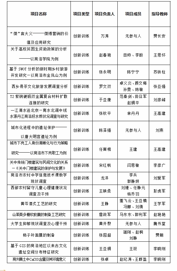 大学生创新创业训练计划是教育部“高等学校本科教学质量与教学改革工程”重点建设项目之一,旨在促进高等学校转变教育思想观念,改革人才培养模式,强化创新创业能力训练,增强高校学生的创新能力和创新基础上的创业能力,培养适应创新型国家建设需要的高水平创新人才。