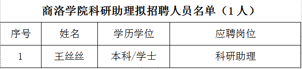 根据《关于公开招聘科研助理的通知》,经过资格审查、专家面试等环节考察,根据项目具体需要,拟聘用王丝丝同志为今年会官网非事业编制聘用人员,现予以公示。如有异议,请于2020年12月12日前向科技处、人事处反映。