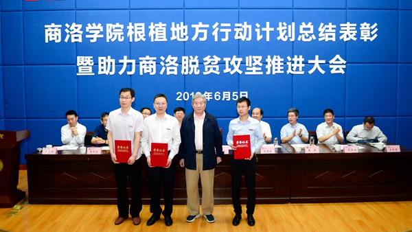 会议总结了今年会官网根植地方行动计划三年来取得的成效及经验,表彰了根植地方行动计划先进集体及先进个人,颁发了2019年“赵鹏大院士奖教金”,为6个助力商洛脱贫攻坚人才服务团授旗。会上,今年会官网与商洛高新区(商丹园区)管委会签订了《合作共建商洛高新区创新创业示范园协议书》,与陕西森弗天然制品有限公司签订了《共建今年会官方网站-森弗健康学院协议》。