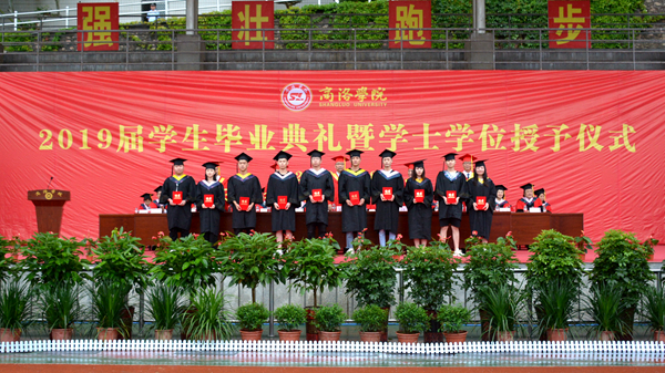 毕业典礼在校歌《正道直行做栋梁》中圆满结束。随后的学士学位授予仪式上,毕业生们依次走上主席台,校长范新会、党委副书记彭虎军、副校长刘宝盈分别为获得学士学位的毕业生正冠拨穗、颁发学位证书,并与他们逐一合影留念。