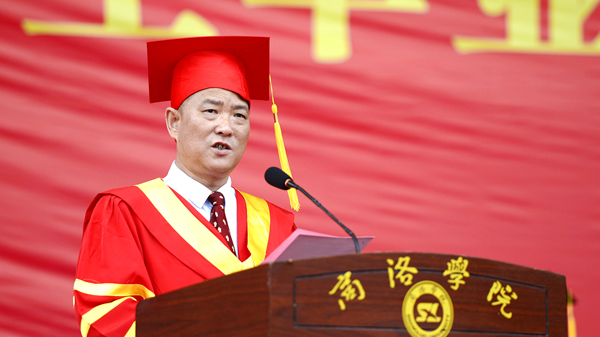 校长范新会以《母校,为你们深情守望》为题发表了情真意切的讲话,向即将奔赴各地建功立业的2770位毕业生表示祝贺,向为同学们成长成才付出辛勤劳动的全体教职员工表示敬意,向始终关心支持学校事业发展的家长朋友们表示感谢。他讲到,人生最美是青春,奋斗的青春最闪亮。四年来,同学们不忘初心、崇德向善,不断砥砺品行,努力增长学识才干,用奋斗诠释了大学的意义,充分彰显了新时代青年的使命和担当,谱写了一支充满力量的青春之歌。学士帽向天空抛起的那一瞬间,就像为大学时光画上了圆满的句号,那一刻,放飞的是理想、是青春,是对未来的无限向往。