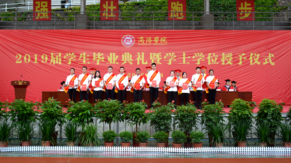 副校长刘宝盈宣读了今年会官方网站2019届毕业生毕业资格及学士学位授予资格审核结果、优秀毕业生及“奉献基层 服务边疆”优秀毕业生表彰决定和校友总会聘任2019届校友联络员通知。邢文倩等99名同学被授予“优秀毕业生”荣誉称号,周文文等22名同学被评为“奉献基层 服务边疆”优秀毕业生,赵晓丹等86名同学被聘任为2019届校友联络员。在热烈的掌声中,校领导为优秀毕业生代表颁发了证书,为校友联络员颁发了聘书。