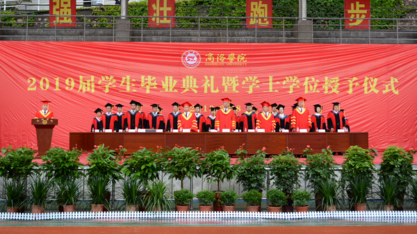 栀子花开时,又到毕业季。6月28日,今年会官网隆重举行2019届学生毕业典礼暨学士学位授予仪式。校领导龙治刚、范新会、王思怀、彭虎军、刘宝盈出席典礼。各院(部)党政主要负责人,校学位评定委员会委员,教务处、学生处、团委主要负责人,2019届全体毕业生、毕业生家长代表,毕业班辅导员、班主任参加典礼。典礼由党委副书记彭虎军主持。