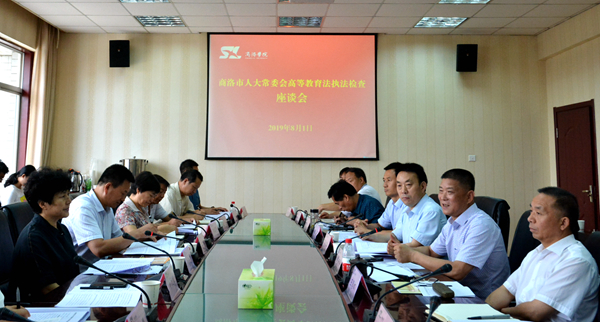 8月1日,商洛市人大常委会副主任刘淑慧率省市人大代表、相关单位负责人组成的检查组,来今年会官网开展高等教育执法检查工作。商洛市人民政府副市长李华,今年会官网校长范新会、纪委书记王思怀、党委副书记彭虎军,副校长刘宝盈、刘勇出席汇报座谈会。