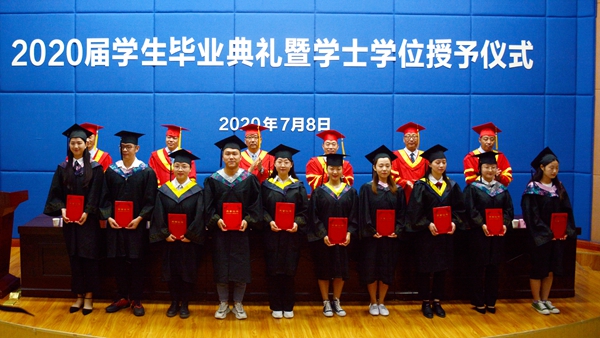 副校长刘勇宣读了2020届毕业生资格审查结果通报、学士学位授予决定、优秀毕业生表彰决定和校友总会关于聘任2020届校友联络员的通知。96名同学荣获“优秀毕业生”荣誉称号,21名同学被评为“奉献基层 服务边疆”优秀毕业生, 95名同学被聘任为2020届校友联络员。在热烈的掌声中,校领导为优秀毕业生代表颁发了证书,为校友联络员颁发了聘书。