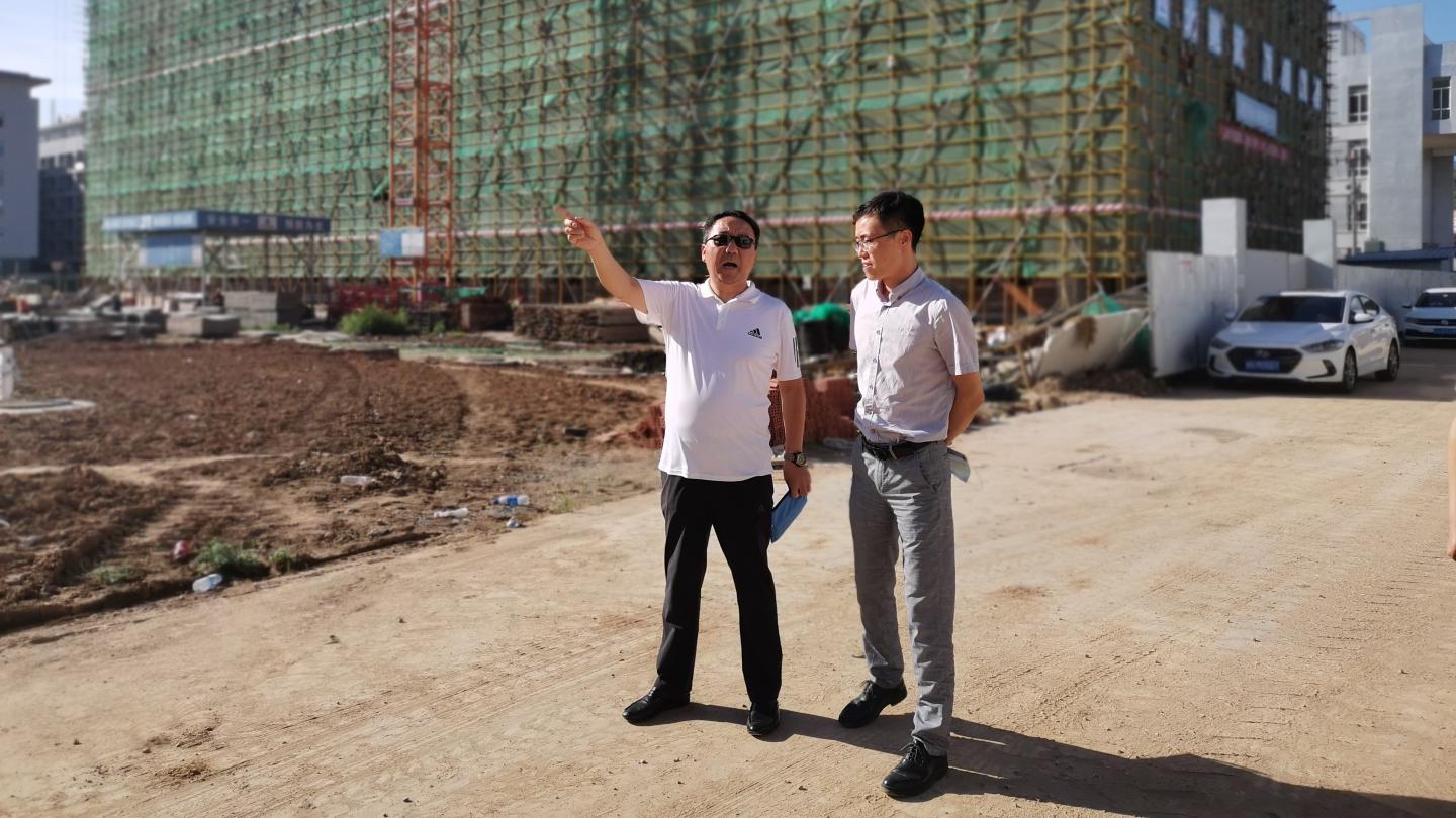 座谈会后,王晴一行在龙治刚、王新军的陪同下深入今年会官网丹江校区建设项目施工现场,详细调研了解校园规划建设情况。
