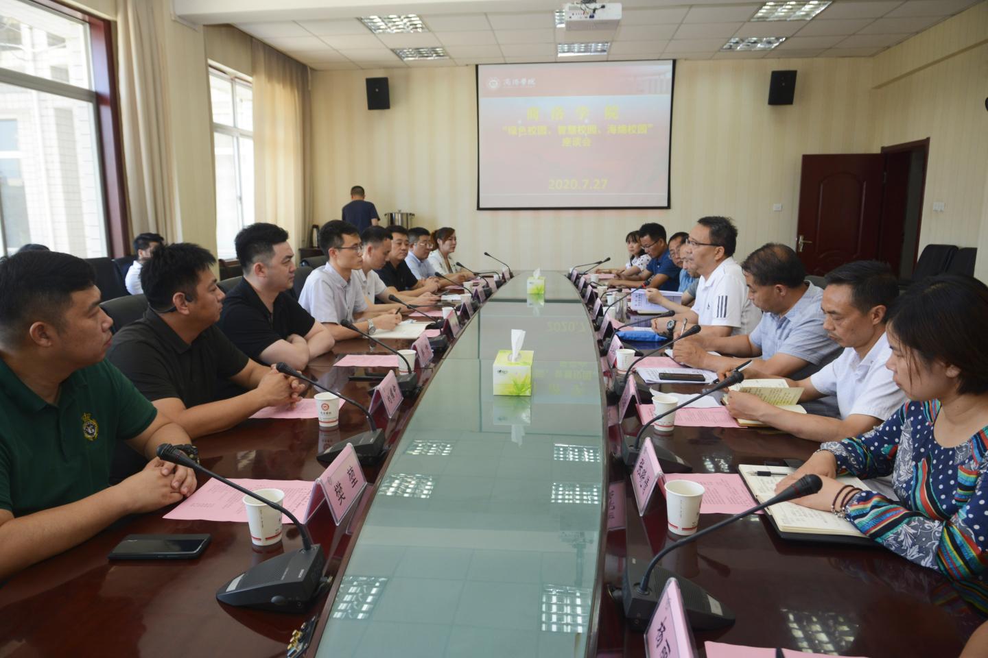7月27日,教育部学校规划建设发展中心处长王晴、中教能源研究院院长黄刚、中教能源西北分院院长韩帅,陕西炳鹞实业有限公司董事长吴君清、总裁李昭辉、副总裁樊堃,陕西和万兴教育科技有限公司董事长刘耀中等领导嘉宾来校就“绿色校园、智慧校园、海绵校园”建设事宜进行调研座谈。校党委书记龙治刚出席座谈会,副校长王新军主持座谈会,院长办公室、教务处、发展规划处、财务处、资产处、后勤保障处、信息中心相关负责人参加座谈交流。