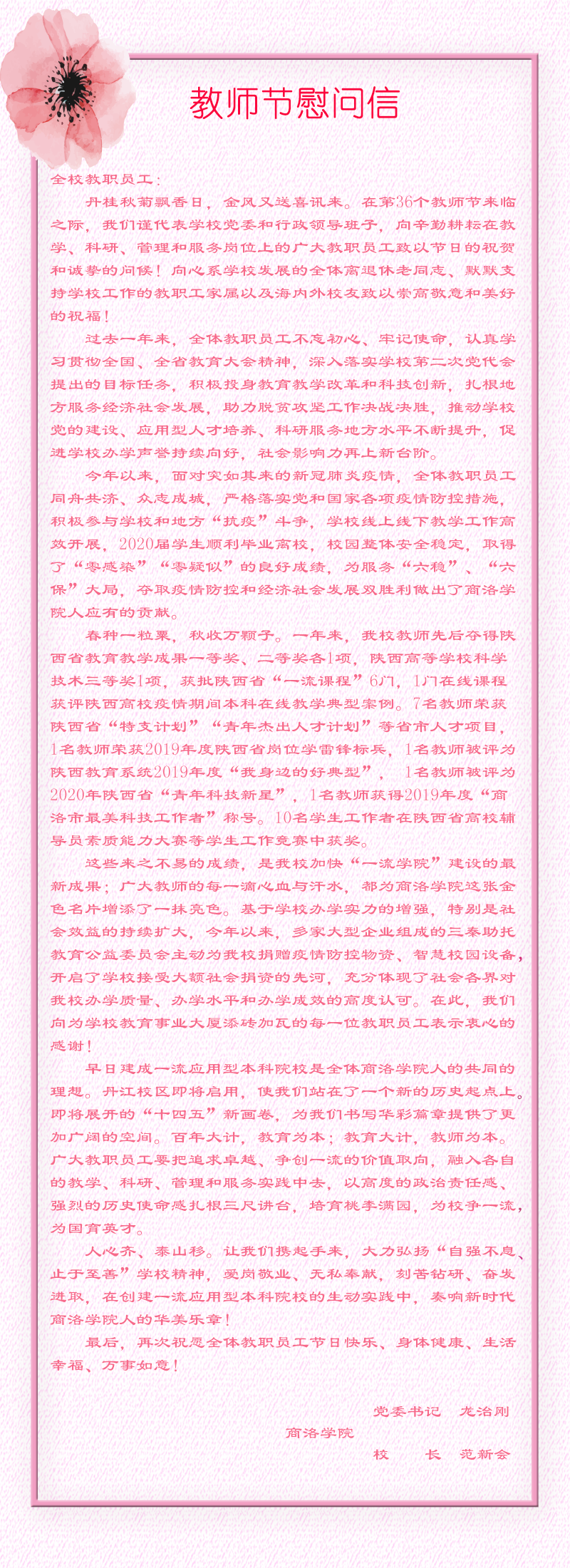 上一篇:校党委书记龙治刚、校长范新会走访慰问教师代表