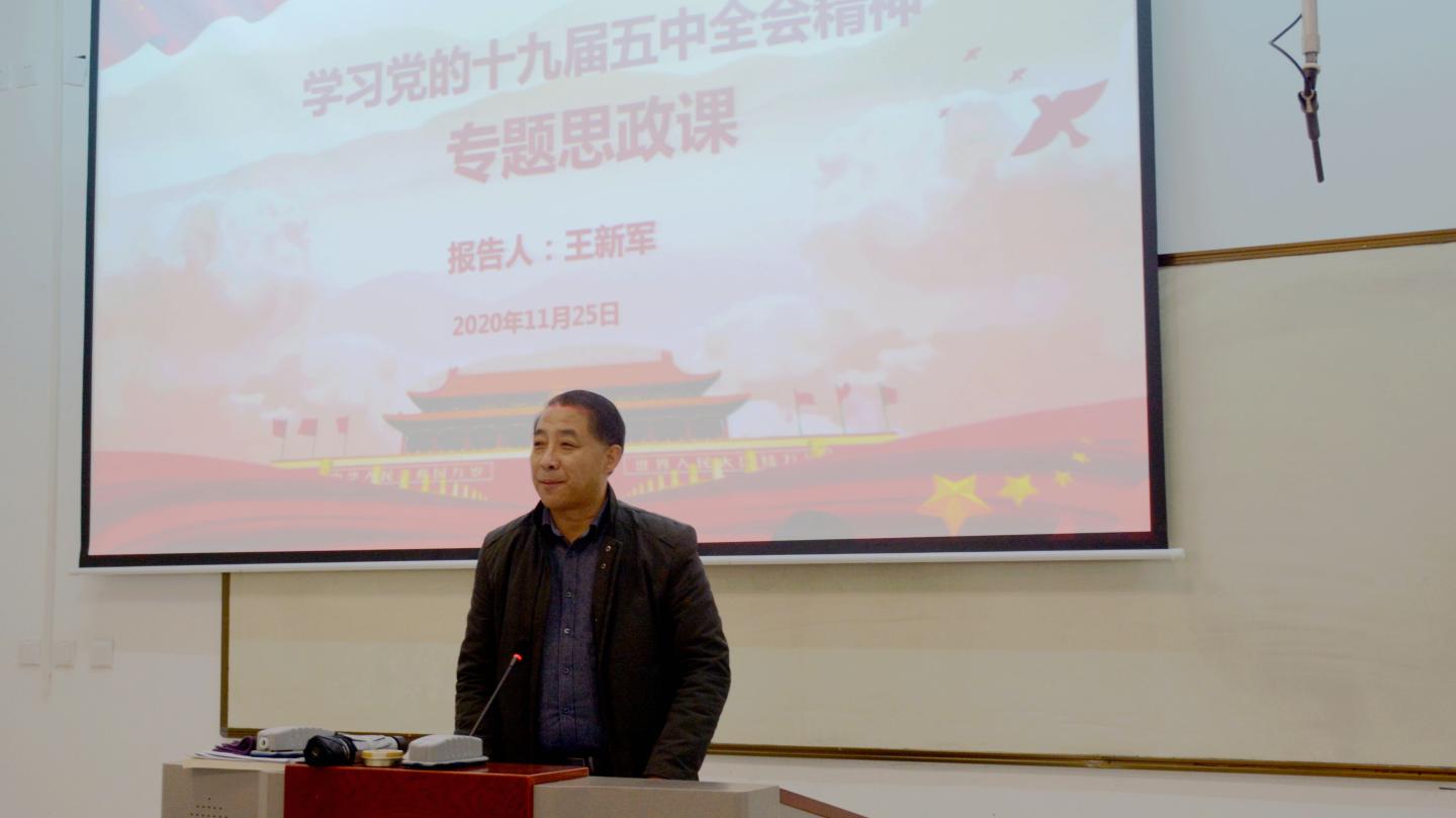 校党委副书记刘勇在讲授中强调,深入学习贯彻党的十九届五中全会精神,就是要加强党对教育工作的全面领导,深刻理解和把握我国2035年远景目标和“十四五”主要目标,充分认识其中凸显的以人民为中心的发展思想,聚焦新发展阶段、新发展理念、新发展格局和贯穿其中的高质量、可持续发展要求,聚焦提升教育质量、推动内涵式发展。他指出,高质量发展离不开高素质人才的支撑,广大青年学子要立志高远,在新发展格局中找准自己的位置,从小事做起,不厌其小、以促其大,在报效祖国、服务社会中实现自身价值。