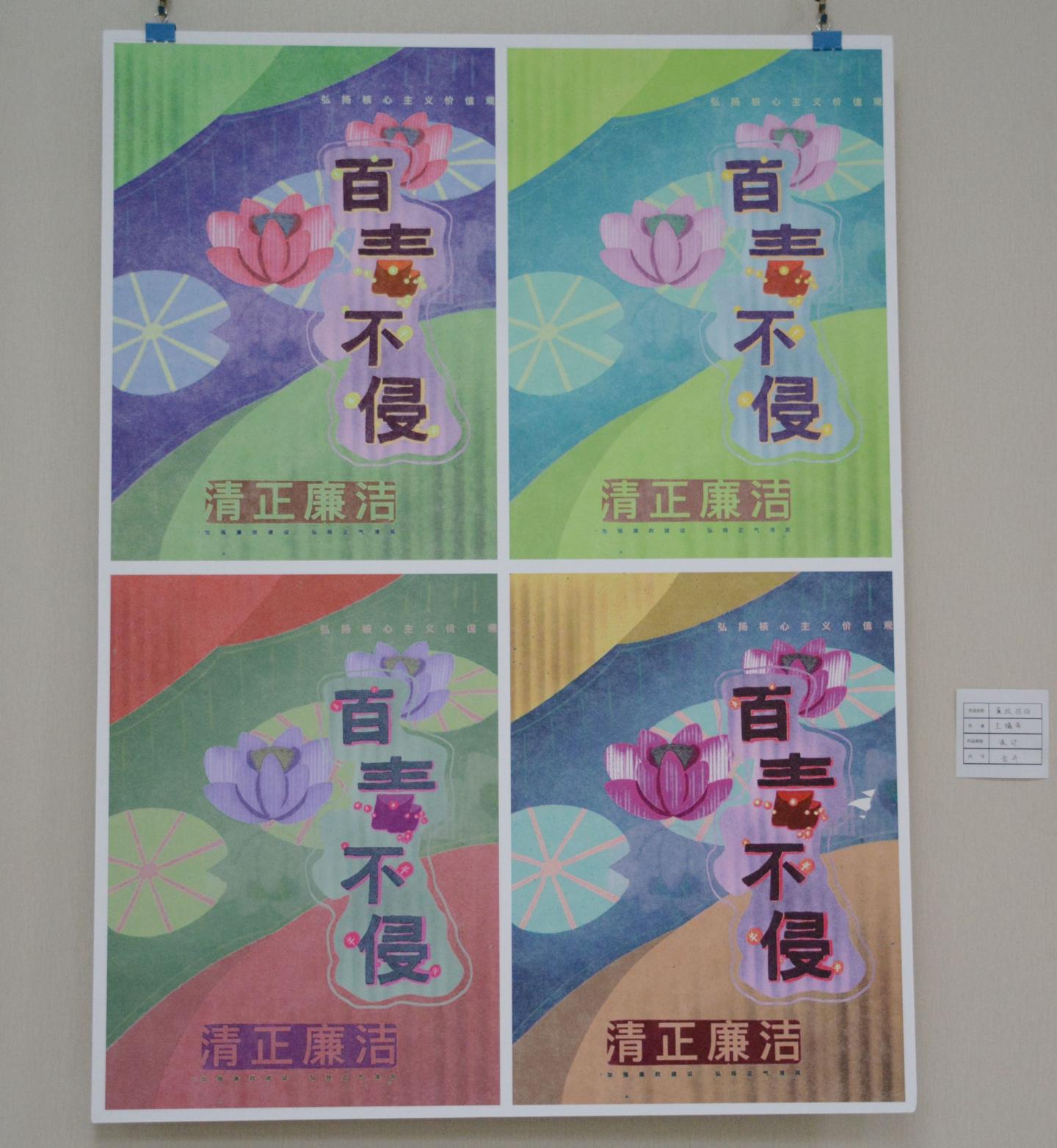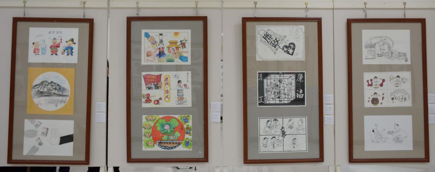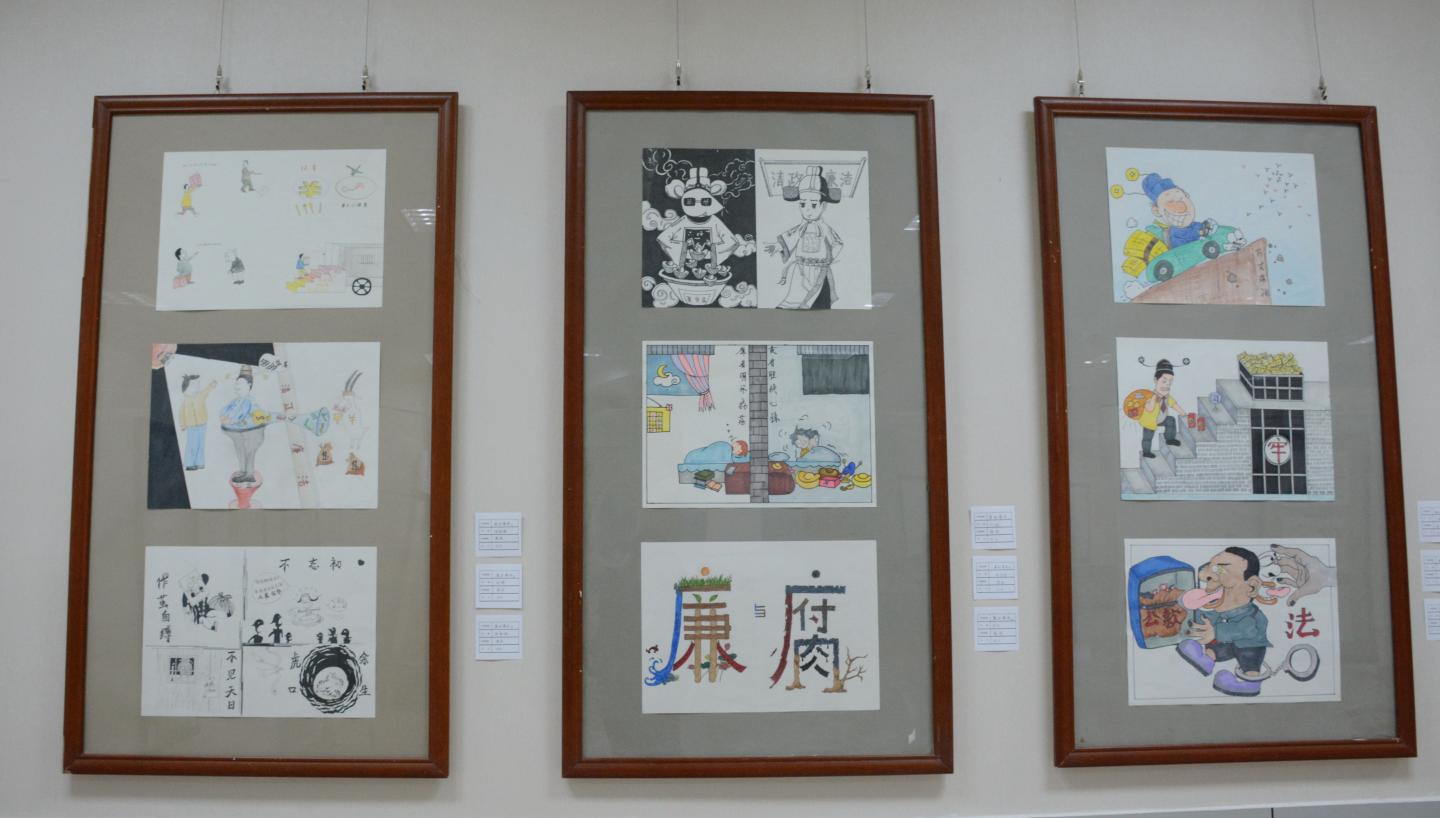 今年8月,校纪委组织开展了廉政文化建设创新工程项目活动,向全校师生征集廉政文化作品。活动启动以来,各党总支、直属党支部高度重视、积极参与,用多样的形式诠释“廉政”的内涵。活动共征集到廉政文化项目20个,经评审、整合、打磨,最终凝练为14个精品项目,包含原创书画作品、歌曲、视频、诗歌、理论研究文章等多种类别。其中,书画作品展项目前期共征集书画作品300余幅,经过多次甄选,最终优选150余幅在本次作品展中进行了展出。此外,本次展出还播放了8部廉洁教育小视频。