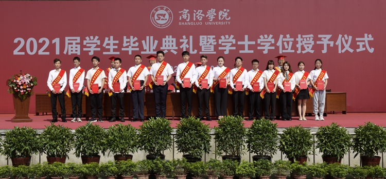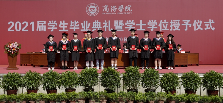 刘宝盈宣读了2021届毕业生资格审查结果通报、本科生学士学位授予决定、陕西省高校优秀毕业生和优秀学生干部名单、今年会官方网站优秀毕业生表彰决定、“奉献基层 服务边疆”优秀毕业生表彰决定、校友总会聘任2021届校友联络员通知。荣悦等117名学生被授予“优秀毕业生”荣誉称号,曾炎阳等22名同学被评为“奉献基层 服务边疆”优秀毕业生,郭肇星等103名同学被聘任为2021届校友联络员。在热烈的掌声中,校领导为优秀毕业生代表颁发了证书,为校友联络员颁发了聘书。