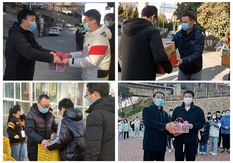 今年,受新冠疫情影响,全体学生在学校度过元旦佳节,为使同学们度过一个温馨、和谐、快乐的元旦,学校为全体学生精心准备了新年礼物。1月1日,校领导张志昌、范新会、彭虎军、刘勇、刘宝盈、王新军分别深入北新街校区和丹江校区,为全体学生送去苹果、橘子等新年礼物,祝福同学们在新的一年平安吉祥、学业有成,取得更大成绩。