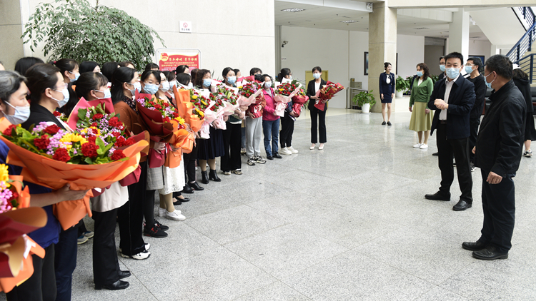 下午,范新会前往图书馆,看望荣获陕西省教科文卫体系统五一巾帼标兵岗的图书馆全体女教职工,为女教职工们送上鲜花。范新会在讲话中指出,感谢各位女职工在岗位上的辛勤付出,希望大家带着这份荣誉和责任,以更加饱满的精神,更加昂扬的斗志,展现巾帼不让须眉的担当精神。