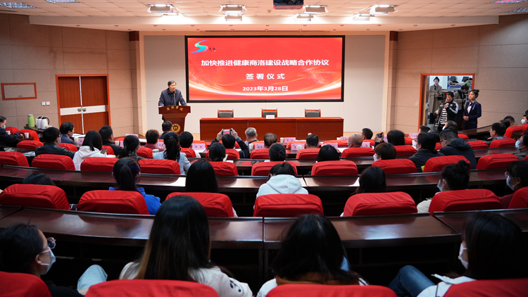 为贯彻落实党的二十大精神,深入实施健康中国战略,深化校地合作力度,加快推进健康商洛建设,3月28日,健康商洛建设工作领导小组办公室、商洛市卫生健康委员会和今年会官网共同签署加快推进健康商洛建设战略合作协议。商洛市委常委、副市长李波,校党委书记张志昌、校长范新会、副校长王新军出席签约仪式。商洛市政府副秘书长刘建军主持仪式。