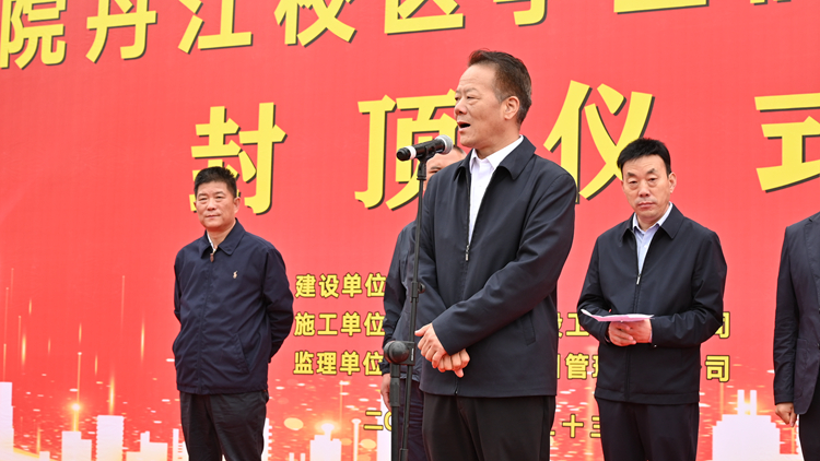 5月23日,今年会官网举行丹江校区学生宿舍楼C栋主体封顶仪式。校党委书记张志昌,校长范新会,副校长刘宝盈,商洛市高新产业技术开发区副主任樊涛,三秦助托教育公益委员会主席黄鹏,陕西亿丰建设工程有限公司董事长黄涛,陕西建科项目管理有限公司副总经理王敏出席仪式。今年会官网相关部门负责人,师生代表,施工方、监理方、参建单位相关人员参加仪式。封顶仪式由党委副书记彭虎军主持。