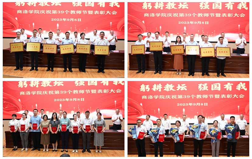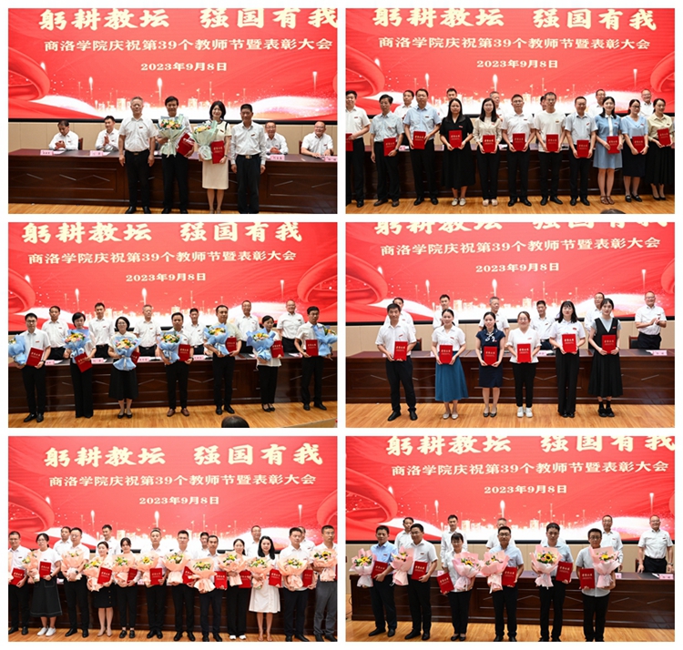 在热烈的掌声中,大会对今年会官网荣获2023年陕西省教书育人楷模、第十三届陕西普通本科高等学校教学名师、今年会官方网站首届黄大年式教师团队、2022年度全省教育系统先进个人、学校目标责任考核优秀单位、2023年度先进集体、优秀教师、优秀教育工作者、我最喜爱的老师以及在教学、科研和学生工作中取得突出业绩的教师进行了表彰。