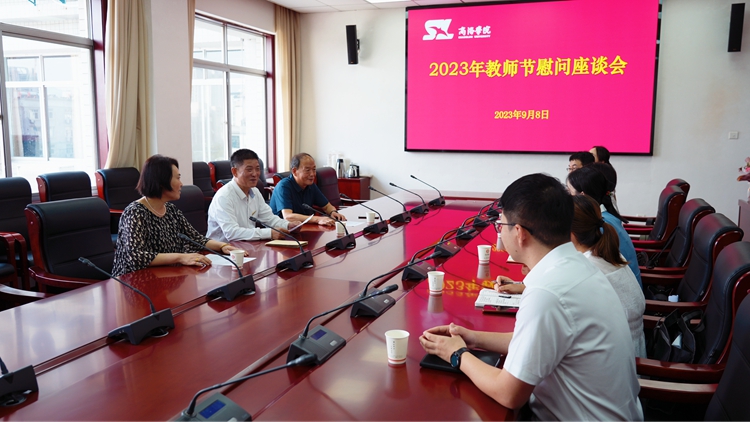 9月8日下午,在第39个教师节即将来临之际,校党委书记张志昌、校长范新会分别慰问奋战在教学、科研及管理一线的教职员工代表、困难职工及离退休老教师代表,并召开座谈会。党委办公室、工会、人事处、离退休处负责人参加座谈会。