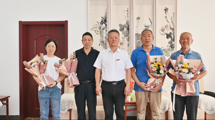 座谈会在轻松愉快而又融洽温馨的气氛中进行,张志昌、范新会向教师代表献花,并合影留念。