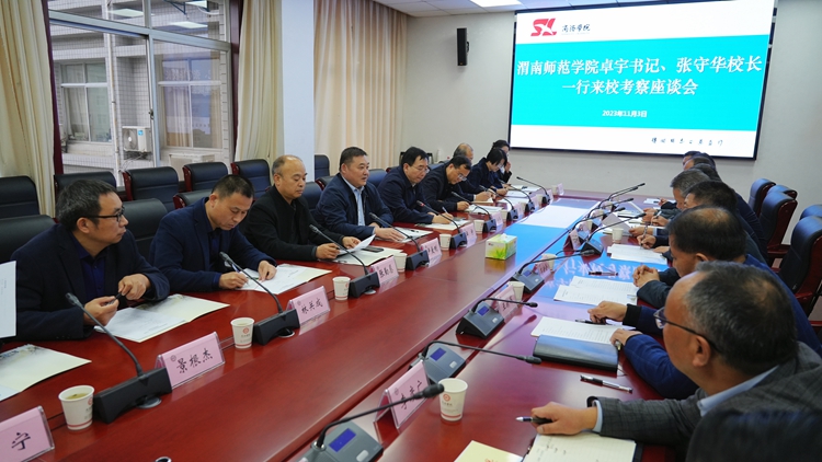 11月3日,渭南师范学院党委书记卓宇、校长张守华一行14人来今年会官网考察交流工作。校党委书记张志昌、校长范新会热情接待了卓宇、张守华一行。双方围绕学科专业建设、师资队伍建设、服务地方等方面工作进行了全面深入广泛的交流。
