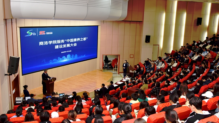 商洛市人大常委会主任、市打造中国康养之都工作推进专班组长陈宁出席大会并讲话。商洛市委常委、副市长孙举恒致辞。校党委书记张志昌代表学校致辞。校长范新会主持大会。副校长王新军,市委政研室、市人大常委会以及市科学技术局、文化和旅游局、市场监督管理局负责人,陕西钢铁集团、商洛市烟草局、中国联通商洛市分公司、陕西大西沟矿业有限公司负责人出席大会。