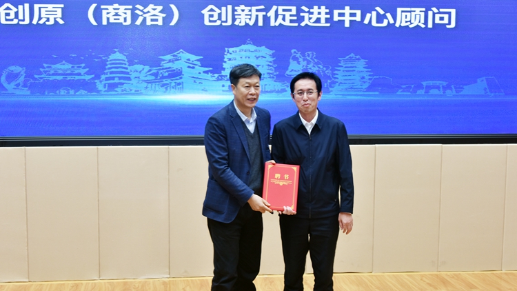 孙举恒代表市委、市政府为陈发虎院士颁发秦创原(商洛)创新促进中心顾问聘书。