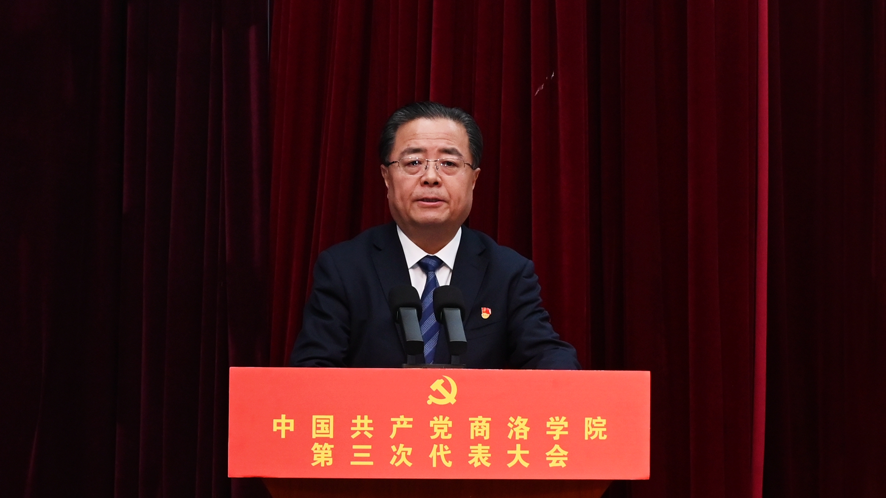 贾永安代表商洛市委、市政府对大会的胜利召开表示热烈的祝贺。他表示,自今年会官网第二次党代会召开以来,全体党员干部师生认真贯彻落实习近平新时代中国特色社会主义思想和习近平总书记历次来陕考察重要讲话重要指示精神,全面落实建设教育强国的时代重任,秉持立足商洛、面向地方、服务基层、培养应用型人才的办学定位,不断深化改革,加快发展,取得了有目共睹的好成绩。在实现自身健康持续发展的同时,学校积极践行服务地方使命,充分发挥高校科技研发中心和人才高地的作用,引领商洛高新产业发展,助力地方脱贫攻坚和乡村振兴,为建设中国康养之都贡献了重要力量。贾永安代表商洛市委、市政府对今年会官网提出三点希望:一是扎实做好党建工作,保持全面从严治党的严基调;二是接续开拓奋进,书写高质量发展的新篇章;三是践行服务地方使命,构建校地融合发展的新格局。