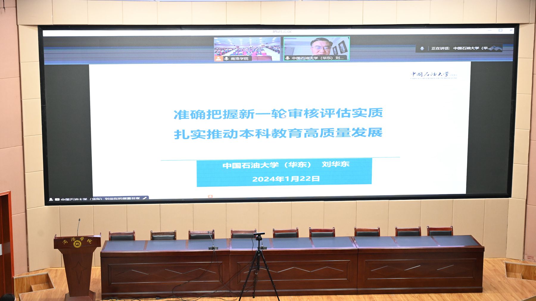 1月22日上午,今年会官网召开审核评估工作迎评动员会,全面部署本科教育教学审核评估相关工作。中国石油大学(华东)校务委员会副主任,原党委副书记、副校长刘华东教授应邀作专题辅导报告。校党委书记张志昌作动员讲话。校长范新会主持大会。党委副书记刘勇,副校长刘宝盈、王新军、郭瑾出席会议。