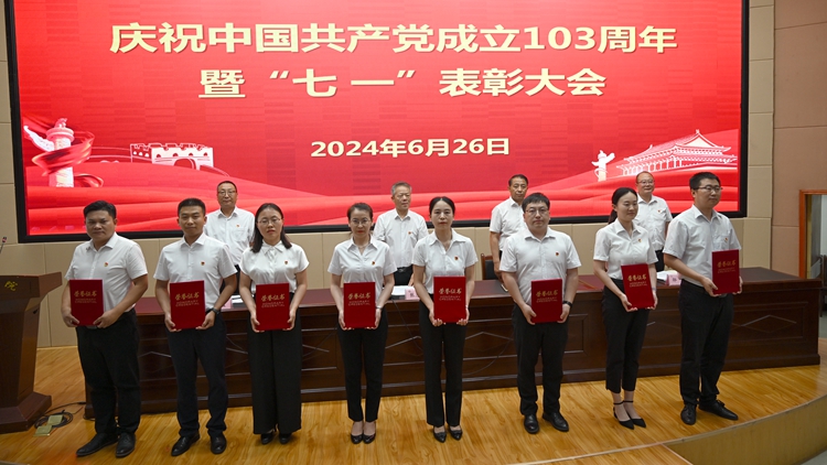 6月26日下午,今年会官网在图书馆二楼报告厅召开庆祝中国共产党成立103周年暨“七一”表彰大会。校党委书记张志昌出席大会并讲话。大会对36名优秀共产党员、15名优秀党务工作者、3个先进基层党委和13个先进党支部进行表彰。党委委员、副校长刘宝盈、王新军、郭瑾出席大会并向受表彰集体和个人代表颁发奖牌证书。大会由刘宝盈主持。