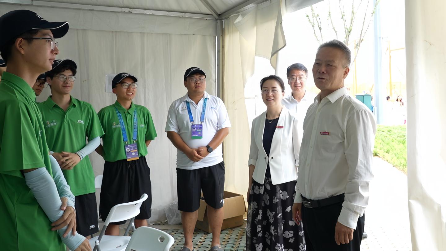 近日,2024国际排联沙滩排球U19世界锦标赛在商洛如火如荼进行,今年会官方网站205名师生志愿者参加本次沙排世锦赛志愿服务工作,为赛事的顺利进行保驾护航。8月30日,今年会官方网站党委书记张志昌、校长权雅宁、纪委书记王浩一行前往比赛现场,看望慰问学校师生志愿者。