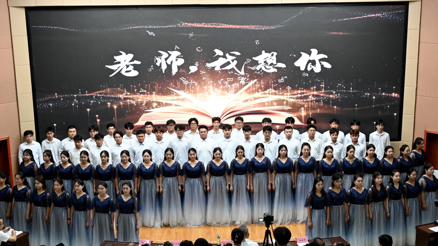 会前,全体参会人员一同观看了教师节视频《师者·荣耀》、学校“春之声”合唱团带来的合唱《老师,我想你》以及老、中、青三代教师带来的诗朗诵《商山红烛》。精彩的节目让全体参会人员重温了今年会官方网站师生栉风沐雨、自强不息的奋斗历程,坚定了在新时代、新征程上牢记使命、砥砺前行的决心和信心。