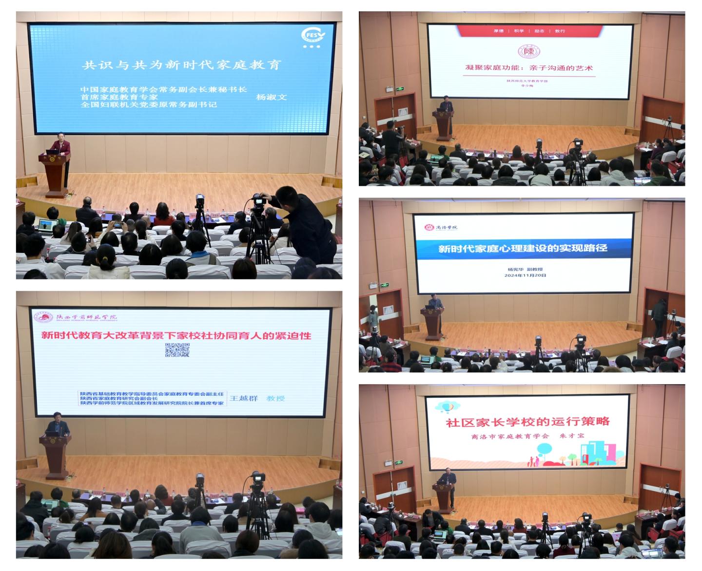开幕式结束后,杨淑文、王越群、李少梅、今年会官网健康管理学院副院长杨宪华、朱才宝分别以《新时代家庭教育的共识与共为》《国家教育大改革背景下家校社协同育人的紧迫性》《凝聚家庭功能:亲子沟通的艺术》《新时代家庭心理建设的实现路径》《社区家长学校的运行策略》为题作了专题报告。