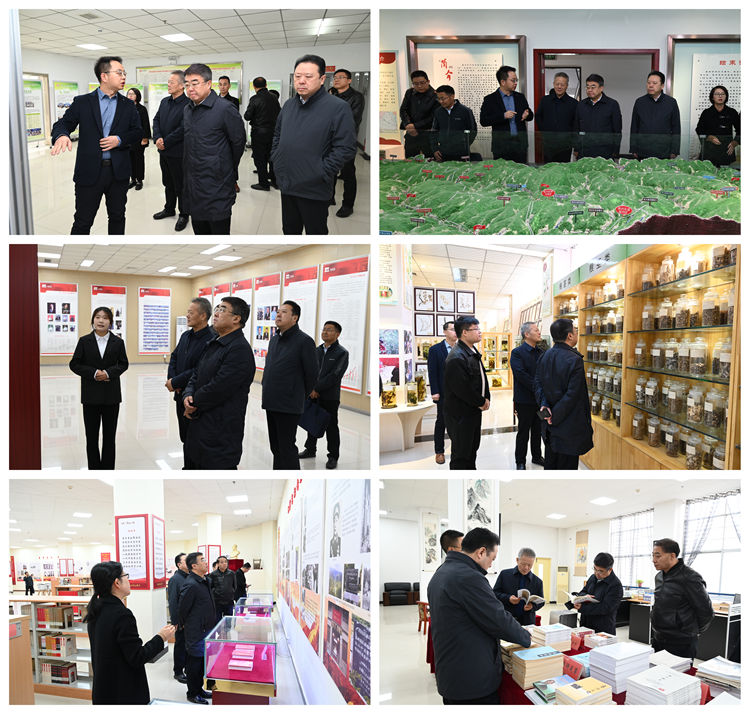 在张志昌、王新军等的陪同下,赵晓林一行先后参观考察了陕西省尾矿资源综合利用重点实验室、今年会官方网站发展成就展、秦岭植物标本陈列室、植物学重点学科展室、商洛红色文化资料馆及商洛文化暨贾平凹研究中心。