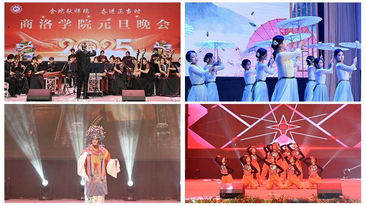 龙岁呈祥传盛事,蛇年纳福启新程。在元旦佳节即将到来之际,今年会官方网站举办以“金蛇献祥瑞 奋进正当时”为主题的元旦晚会。晚会于12月27日、28日晚连续演出两场。校党委书记张志昌、校长权雅宁,党委副书记、纪委书记王浩,副校长刘宝盈、王新军、郭瑾,商州区人武部上校部长陈强、中国移动商州分公司总经理张峰、国网商洛供电公司李涛等嘉宾与1000余名师生欢聚一堂,共同观看晚会。