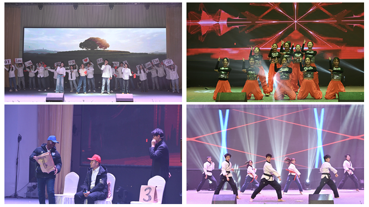 原创诗朗诵《遇见》,在时光长河的波光里回顾了学校发展历程,歌颂了2024年逐光而行的不凡成就,激励广大师生与学校一道载梦飞翔。舞蹈《额尔古纳河》展现了祖国山河的壮美与柔情,体现出人与自然的和谐共生。歌剧《沂蒙山》选段演绎了革命战士大青山突围、渊子崖战役的峥嵘历史。《我的大学时代》通过逗趣的相声表演生动再现了课堂奇遇、宿舍笑谈的幽默时刻。明快灵动的小合唱《唱得幸福落满坡》,用歌声把观众带到了丰收的田野中,看到了农民脸上洋溢的幸福笑容。二胡独奏《战马奔腾》饱含着勇往直前的力量,诉说着英雄们的壮志豪情。《戏曲联唱》将众多艺术形式巧妙聚集,唱念做打、五彩脸谱,一招一式尽显东方之美。外籍教师罗杰一、王亮、艾玛和国际创意课程学生合唱《We are the world》,用音乐展现了超越国界和文化的团结友爱。魔术表演《选择》以绝妙的构思、精湛的手法为观众带来无尽惊喜。舞蹈表演《醉春风》,在水墨烟雨中弄花影、戏春风,展现了草长莺飞、杏花春雨的江南美景。《流行歌曲串烧》唱响青春之歌,给灿烂的成长岁月点燃生生不息的花火。《武动华章》将太极的柔、双截棍的巧、跆拳道的刚汇聚一处,在动静之间带领观众走进武术世界。健身操舞《青春就这young》整齐划一的动作、自信美丽的笑容,展现了商院学子积极向上的精神风貌。