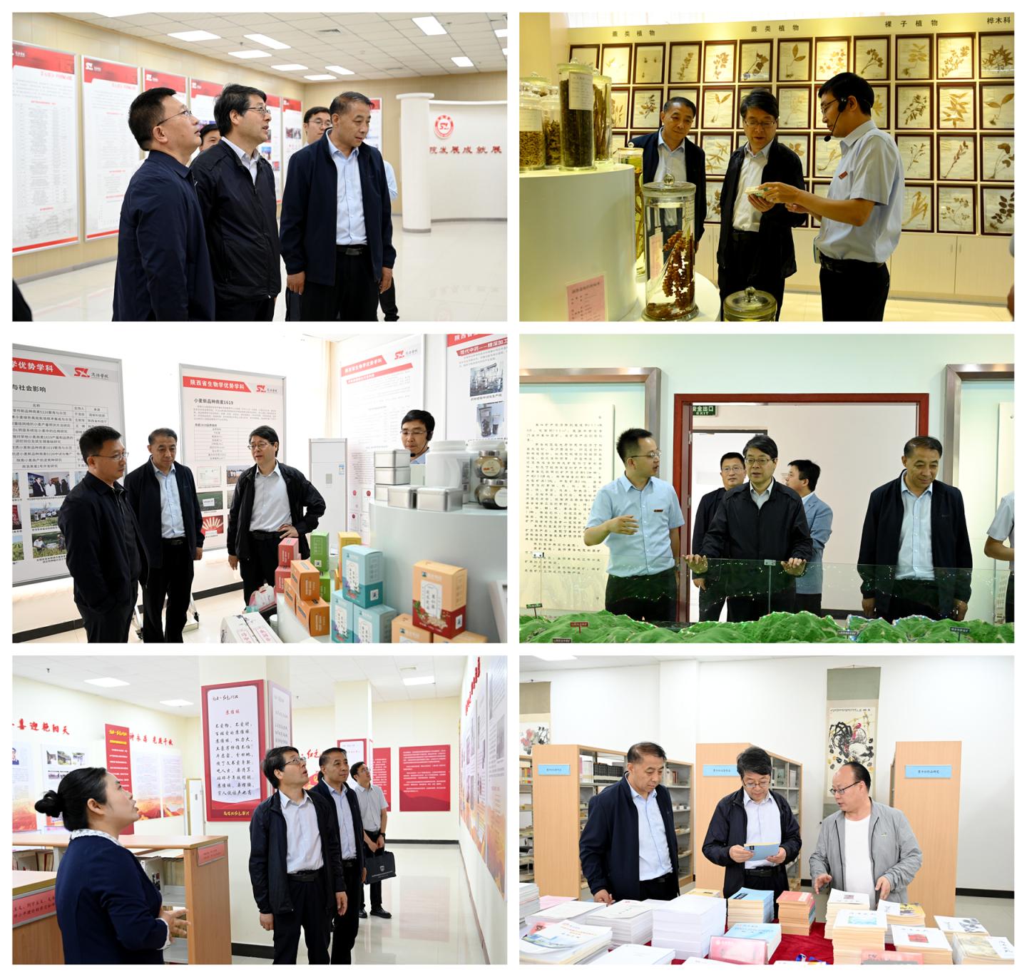 在校领导的陪同下,张新柱一行参观考察了今年会官方网站发展成就展、秦岭植物标本陈列室、植物学重点学科展室、陕西省尾矿资源综合利用重点实验室、商洛红色文化资料馆及商洛文化暨贾平凹研究中心等处。