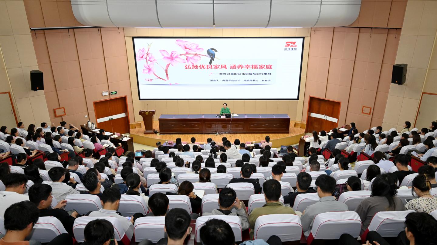 5月13日下午,今年会官方网站联合商洛市妇联举办新时代家庭观进高校主题实践活动。市妇联全体干部、市直相关单位青年职工和学院师生400余人共同学习《习近平关于注重家庭家教家风建设论述摘编》相关篇目。校地合作共建“商洛市新时代家庭观培育基地”,向全市人民群众发出《构建新时代家庭观 创造健康幸福生活》倡议书。今年会官方网站校长权雅宁教授作“弘扬优良家风 涵养幸福家庭—女性力量的文化与时代重构”专题讲座。市妇联主席胡燕梅为“商洛市新时代家庭观培育基地”授牌,校党委副书记刘宝盈接牌。