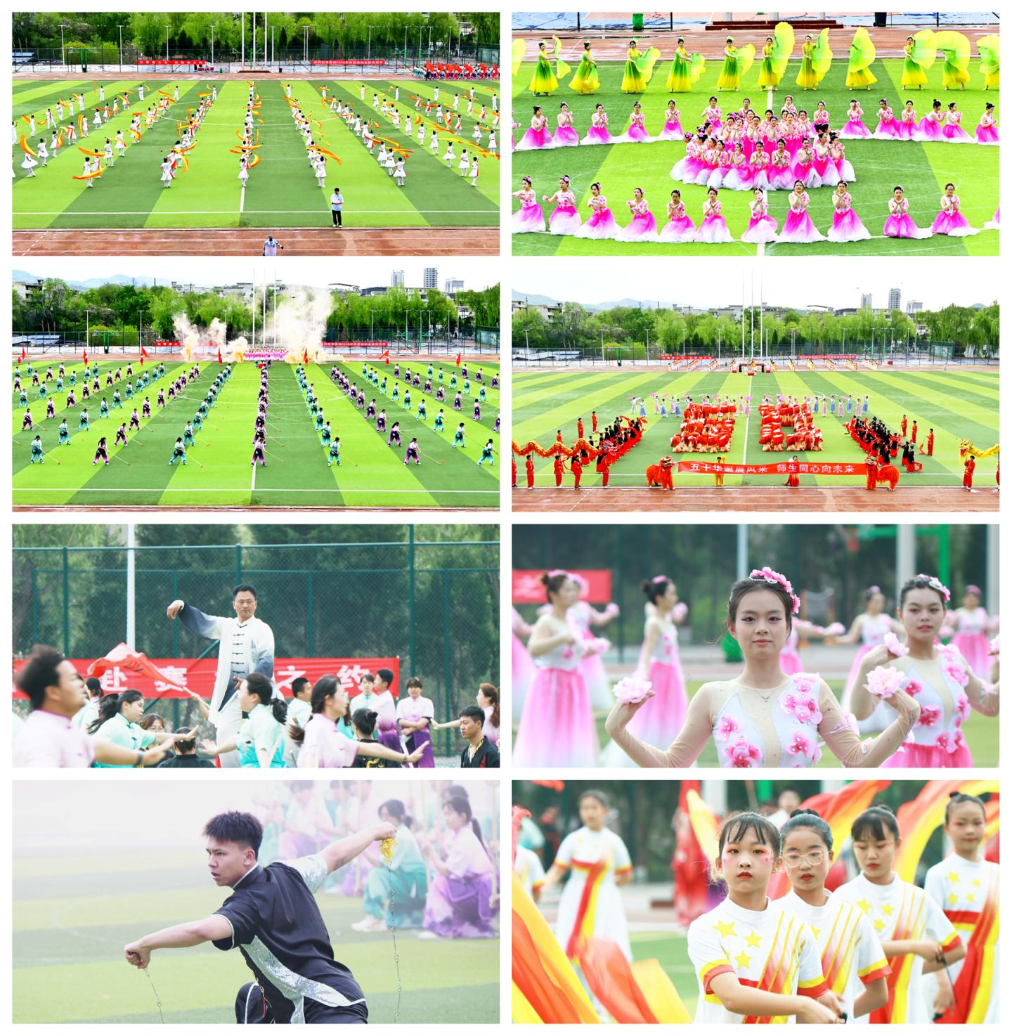 开幕式文艺展演精彩纷呈、气势恢宏。人文学院《栉风沐雨五十载龙腾狮舞谱新篇》鼓乐齐鸣、气势磅礴,抒发了师生喜迎建校50周年的真挚情怀;附属小学《纱球舞》轻盈灵动、童趣盎然,尽显青春朝气与蓬勃生机;生物学院200名学子带来《挥棍震山河 扬帆十五五》,棍法刚劲、队列整齐,秦风古韵与时代风采交相辉映;教育科学学院、艺术学院联袂献上《春逢盛世 共赴新程》,舞姿优美、歌声嘹亮,礼赞新时代、奋进新征程。整场展演融传统文化与时代气息、体育精神与校园文化于一体,赢得全场阵阵掌声。