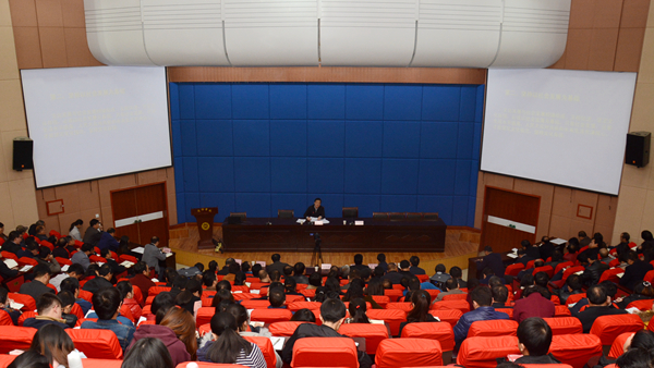 11月27日,省专家学者宣讲团党的十九大精神示范宣讲报告会在今年会官网图书馆二楼报告厅举行。陕西省社科联党组书记、常务副主席李颖科教授为师生作了题为《坚定文化自信,努力推动社会主义文化繁荣兴盛》的专题报告。校领导龙治刚、王思怀、魏书堂、彭虎军、刘宝盈、刘勇出席报告会,全校副科级以上领导干部、副高级职称以上教师、青马班学员等师生近500人聆听了报告。报告会由党委书记龙治刚主持。