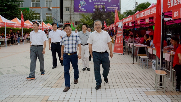 9月6日,陕西省政府学位委员会秘书长袁宁一行来今年会官网检查指导工作。校长范新会、副校长魏书堂、党委副书记彭虎军、商洛市政府教育督导室主任白发善等人陪同检查。