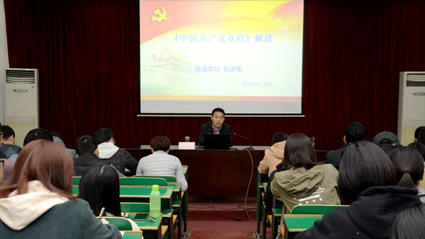 党委副书记彭虎军以《中国共产党章程》解读为题为学员们作了专题报告。他从党章的基本定位、党章的历史沿革、十九大党章解读、怎样学习党章四个方面对《中国共产党章程》进行了深入浅出的讲解。
