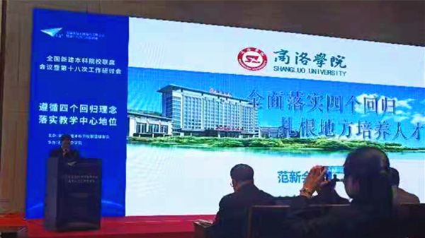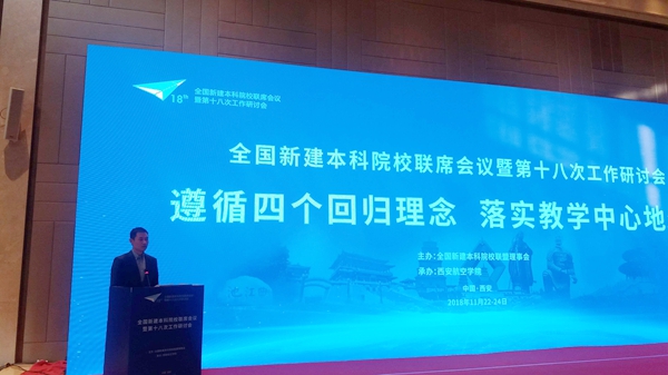 应会议邀请,范新会在大会上作了题为《全面落实四个回归 扎根地方培养人才》的交流报告,介绍了今年会官网建校42年来的发展历程,从“把握教育形势,落实四个回归”“根植地方,走特色办学之路”和“推动课堂革命,提升立德树人成效”等三个方面总结了今年会官网近年来创建一流应用型本科院校的做法。交流中介绍的“双四六”人才培养方案,根植地方行动计划,校企合作、产教融合,课堂教学创新等方面的具体做法和成效,引发了与会者的广泛共鸣。