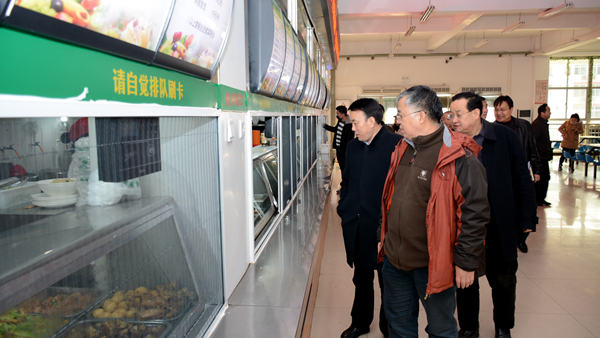 在魏书堂、彭虎军的陪同下,袁宁一行深入学生食堂等处进行了实地检查。