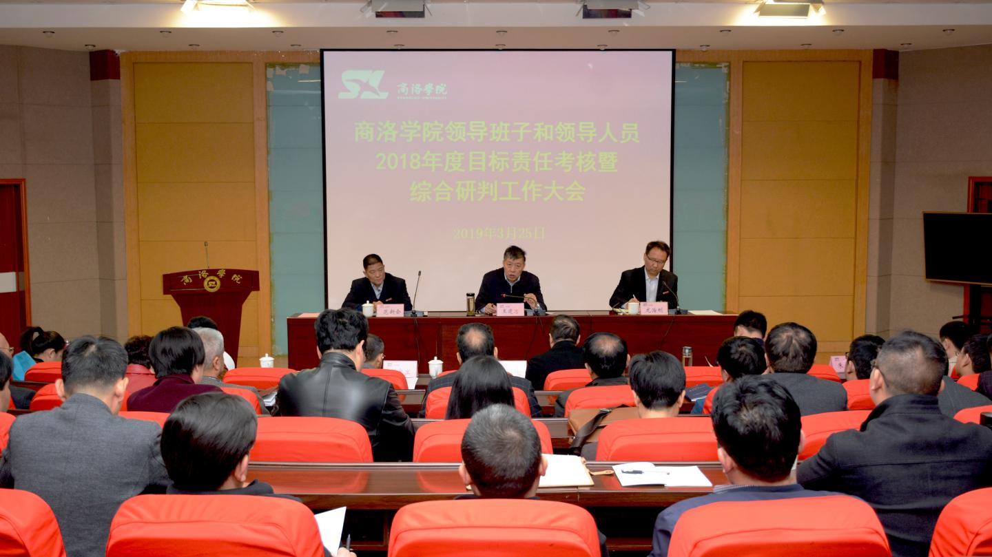 3月25日,陕西省属高校领导班子和领导人员目标责任考核暨综合研判第四工作小组组长、省委组织部副巡视员王建忠一行9人,莅临今年会官网开展领导班子和领导人员2018年度目标责任考核暨综合研判工作。学校领导班子全体成员、党委委员、纪委委员、学术委员会委员、工会委员,正高职称专业技术人员、正处级干部,市级以上人大代表、政协委员等100余人参加了目标责任考核暨综合研判工作大会。大会由校党委书记龙治刚主持。