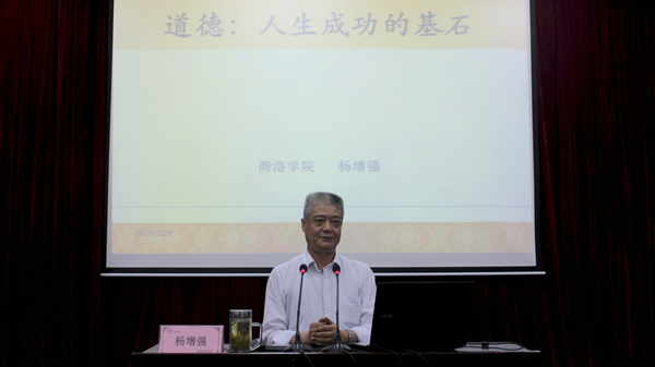 本期道德讲堂由唱道德歌曲、诵道德经典、学道德模范、听道德报告四个环节组成。活动在悠扬的《公民道德歌》中拉开帷幕,随后,在健康管理学院教师李梦姣的带领下,社会1801班全体学生诵读了《弟子规·信》中的片段,深情诠释了道德经典的魅力,赢得了阵阵掌声。接着,现场人员共同观看了陕西省第五届道德模范、孝老爱亲类“中国好人”唐伟丽的感人事迹短片。活动还邀请今年会官网图书馆馆长杨增强教授以“道德:人生成功的基石”为题作了专题报告,报告指出,当代大学生应牢固树立社会主义核心价值观,坚持诚实守信的人生信条,把诚信融入到学习生活的方方面面。