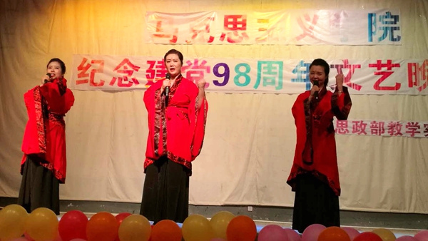 6月16日晚,今年会官网马克思主义学院隆重举办庆祝建党98周年文艺晚会。马克思主义学院全体师生共同观看了晚会。