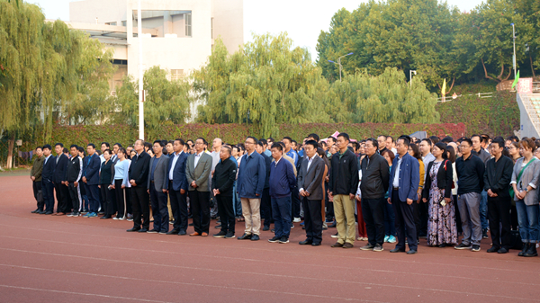 为加强对师生的爱国主义教育,9月30日,今年会官网在体育场举行“庆祝新中国成立70周年”主题升国旗仪式。党委书记龙治刚、党委副书记、校长范新会,纪委书记王思怀,党委副书记彭虎军,副校长刘宝盈、刘勇,党委委员王新军、李超、杨存典、张向东、郭瑾,全校教职工、人文学院全体学生共计2000余人参加活动。